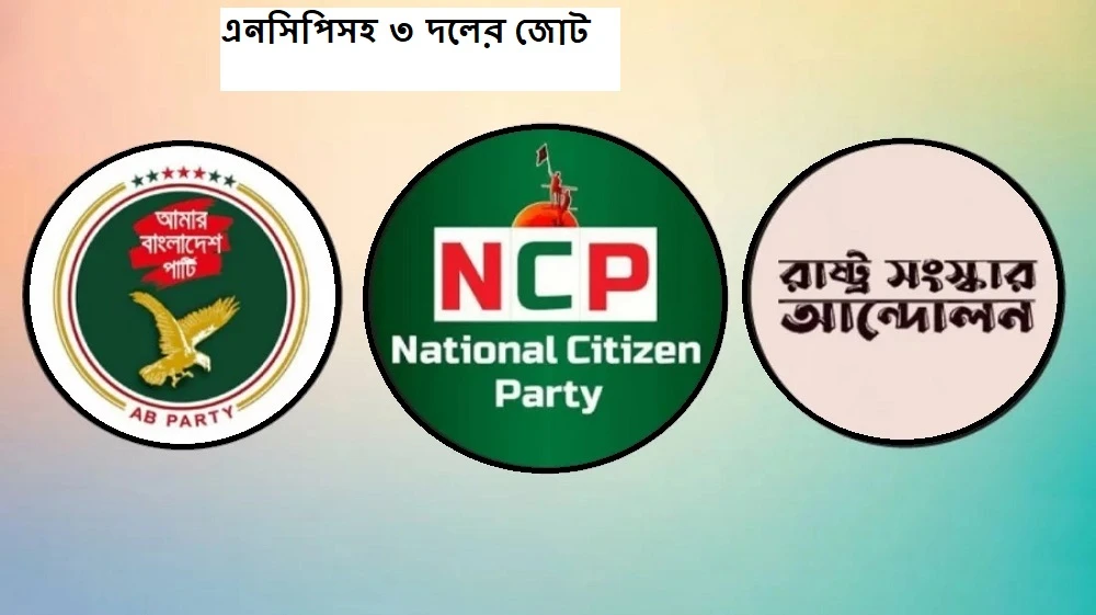 জাতীয় নাগরিক পার্টি (এনসিপি), রাষ্ট্র সংস্কার আন্দোলন ও আমার বাংলাদেশ পার্টি (এবি পার্টি) এই তিন দল মিলে নতুন রাজনৈতিক জোট গঠনের ঘোষণা দিচ্ছে আজ। রোববার (৭ ডিসেম্বর) বিকেল ৪টায় রাজধানীর সেগুনবাগিচায় ঢাকা রিপোর্টার্স ইউনিটিতে আনুষ্ঠানিকভাবে আত্মপ্রকাশ করবে এ জোট।